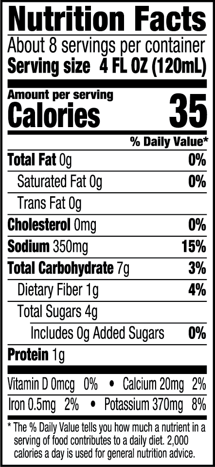 Filtered Water, Organic Tomato Concentrate, Organic Lime Juice, Organic Carrot Juice, Organic Celery Juice, Organic White Vinegar, Sea Salt, Organic Lemon Juice Concentrate, Organic Natural Flavors, Organic Parsley Juice, Organic Black Pepper, Organic Beet Juice, Citric Acid, Organic Lettuce Juice, Organic Spinach Juice, Organic Celery Seed Powder.